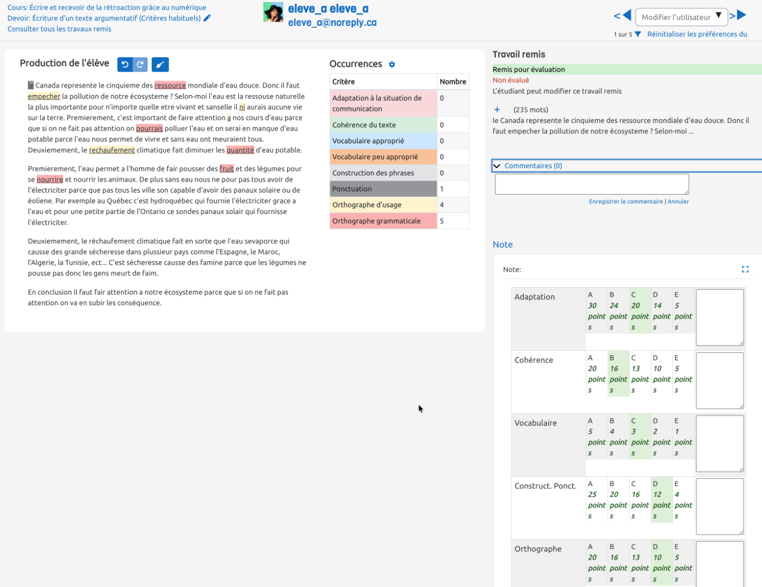 - Utilise l'outil d'annotation (surligneur) pour rétroagir et appliquer ses commentaires