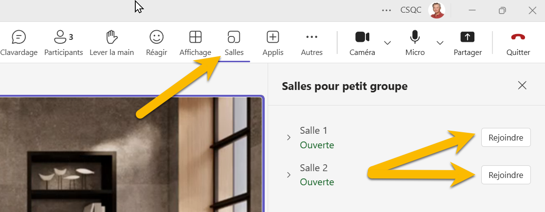 Pour accéder aux salles ou revenir dans la salle principale