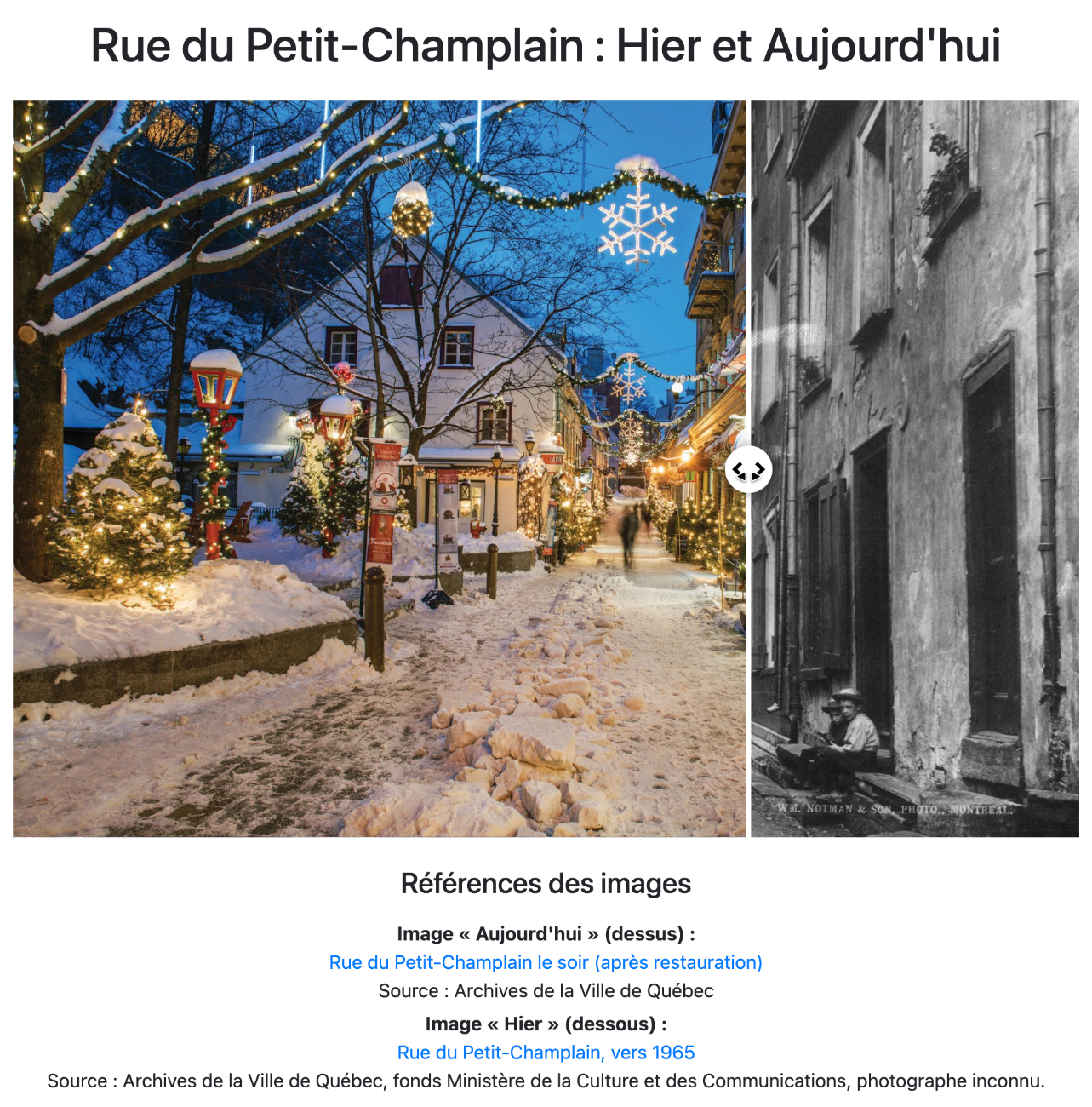 Cette solution permet la création d'une page qui offre 2 images qui sont superposées et que l'on peut révéler à partir d'un filet vertical.