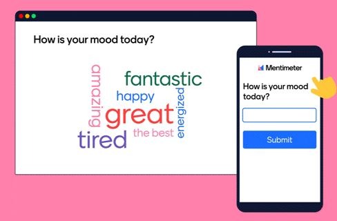 Mentimeter est un outil de présentation qui permet, pendant la présentation, en direct, de faire interagir les élèves au travers de questions variées, de sondages et de quiz. Vous pouvez, entre autre, créer des nuages de mots et recueillir des idées.
