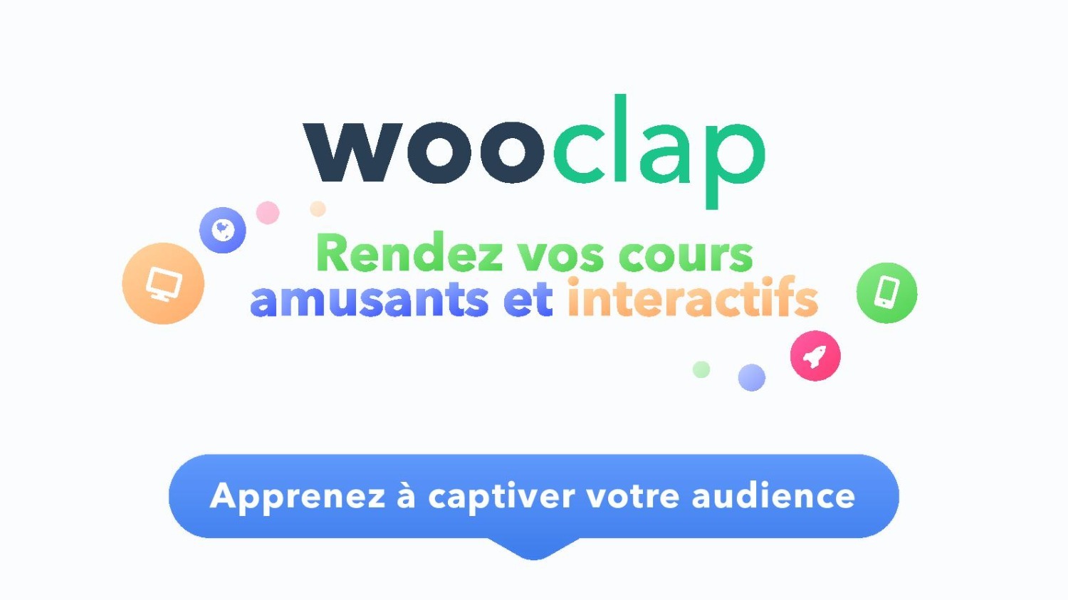 Wooclap propose plus de 20 types de questions pour faire participer les élèves à votre cours et devenir acteurs de leur apprentissage : questions à choix multiples, nuages de mots, sondages, brainstorming... En passant par le mode compétition et le mur de messages !