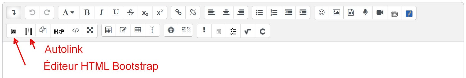 L'icône de l'éditeur HTML Bootstrap se trouve parfois sur la deuxième ligne du menu.