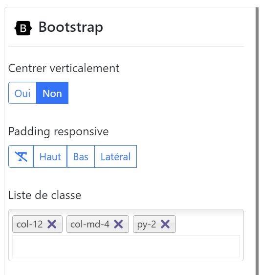 - Supprimez la classe Bootstrap « col-md-4 » et ajoutez la classe « col-md-6 » pour chacune des 2 « Col » restantes