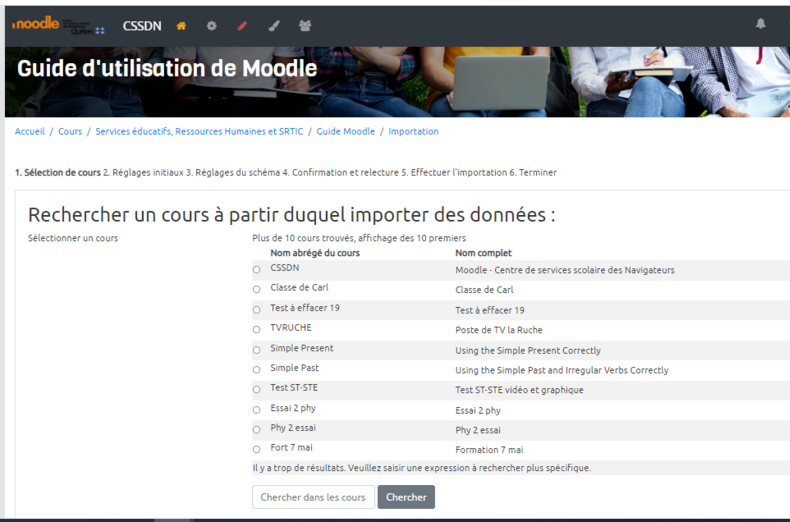 Section : Module 3 : Cours de niveau I | Guide d'utilisation de Moodle | RECITSED