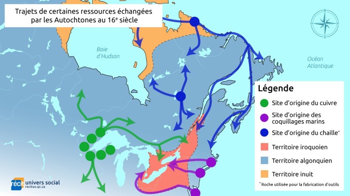 Trajets de certaines ressources échangées par les Autochtones au 16e siècle