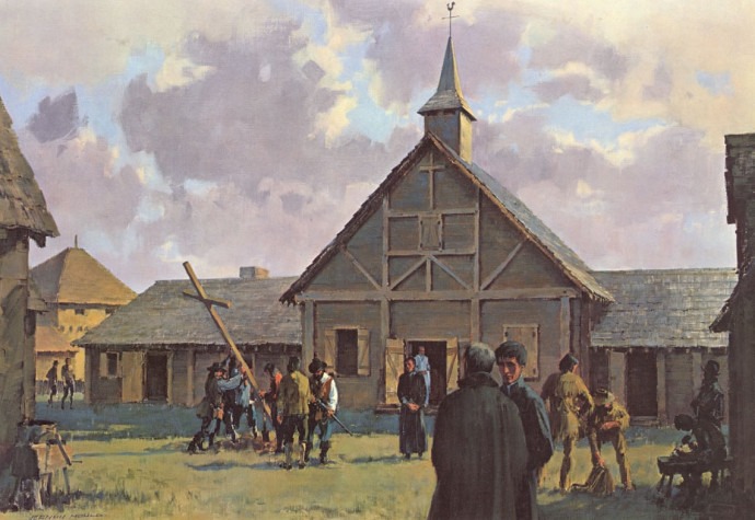 Source : Jean-Baptiste Lagacé, Champlain et les Récollets au 17e siècle (vers 1921), Musée de la civilisation, 90-1692-32. Licence : Creative Commons (BY-NC-ND).
