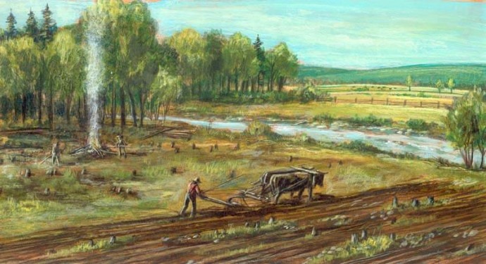 Source : Jacques Lamontagne et Bernard Duchesne, Lopin de terre en défrichement. Licence : tous droits réservés.