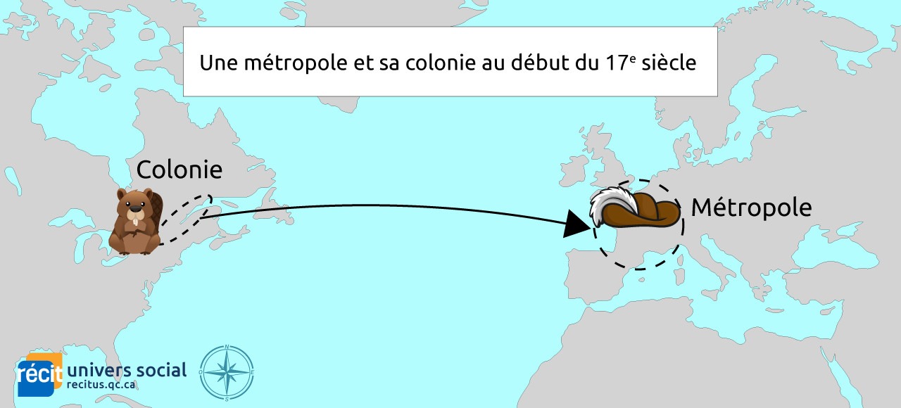 À partir de 1608, le projet de colonie de la France prend forme de manière permanente dans la vallée du Saint-Laurent. L’arrivée de colons français et l’organisation territoriale de la colonie entrainent graduellement la formation d’une société coloniale qui dépend du commerce des fourrures.