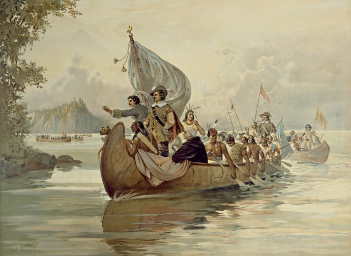 Source : John David Kelly, Champlain dans la baie Georgienne au 17e siècle (entre 1895-1900), Musée McCord, M993.154.314. Licence : domaine public.