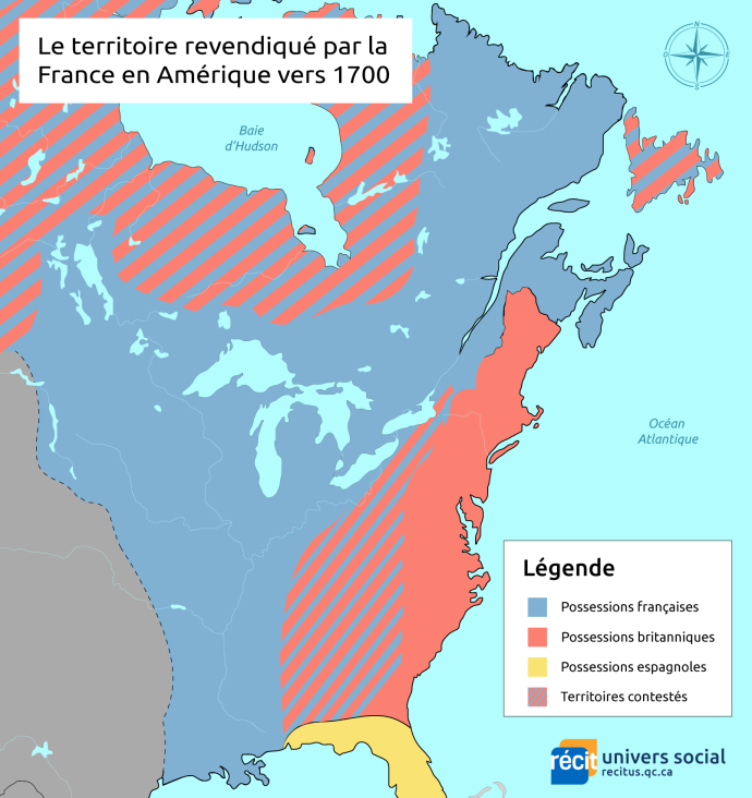 Le territoire occupé et revendiqué par la France en Amérique se transforme en fonction des rivalités entre les empires coloniaux jusqu’à la conquête de la Nouvelle-France par la Grande-Bretagne en 1760. Dans l'ensemble, l’expansion des empires coloniaux transforme aussi le territoire des Premières Nations, au sein duquel de plus en plus de colons d’origine européenne s'aventurent et s’établissent.