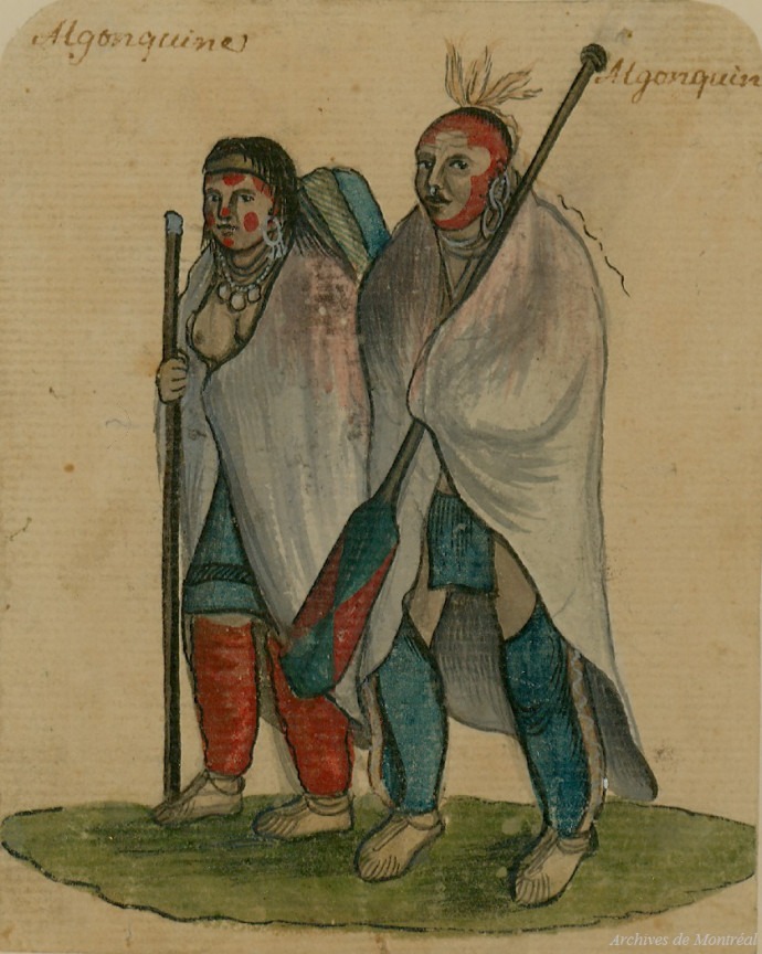 Source : Auteur inconnu, Algonquin, algonquine (entre 1750 et 1780), Archives de la ville de Montréal, CA M001 BM007-2-D27-P004. Licence : Creative Commons (BY-NC-SA).