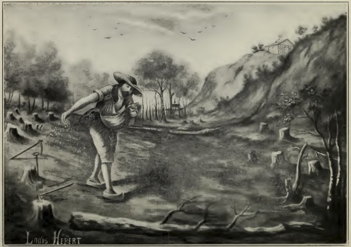 Source : Auteur inconnu, « Louis Hébert semant », dans Abbé Azarie Couillard Després, Louis Hébert, Premier Colon Canadien et sa Famille, Impr. de l'Institution des sourds-muets, 1918, en ligne sur Archives.org. Licence : domaine public.