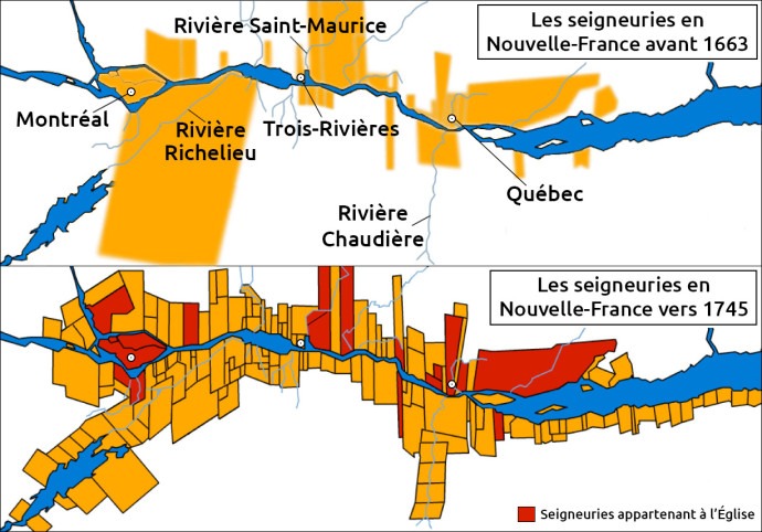 Entre 1608 et 1760, la France compte sur le régime seigneurial pour organiser la distribution des terres aux colons qui s’installent en Nouvelle-France. Ce mode d’occupation du territoire qui provient de la métropole permet également de reproduire les divisions sociales européennes dans la colonie.
