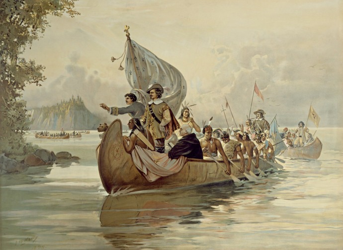 Source : John David Kelly, Champlain dans la baie Georgienne (entre 1895 et 1900), Musée McCord, M993.154.314. Licence : domaine public.