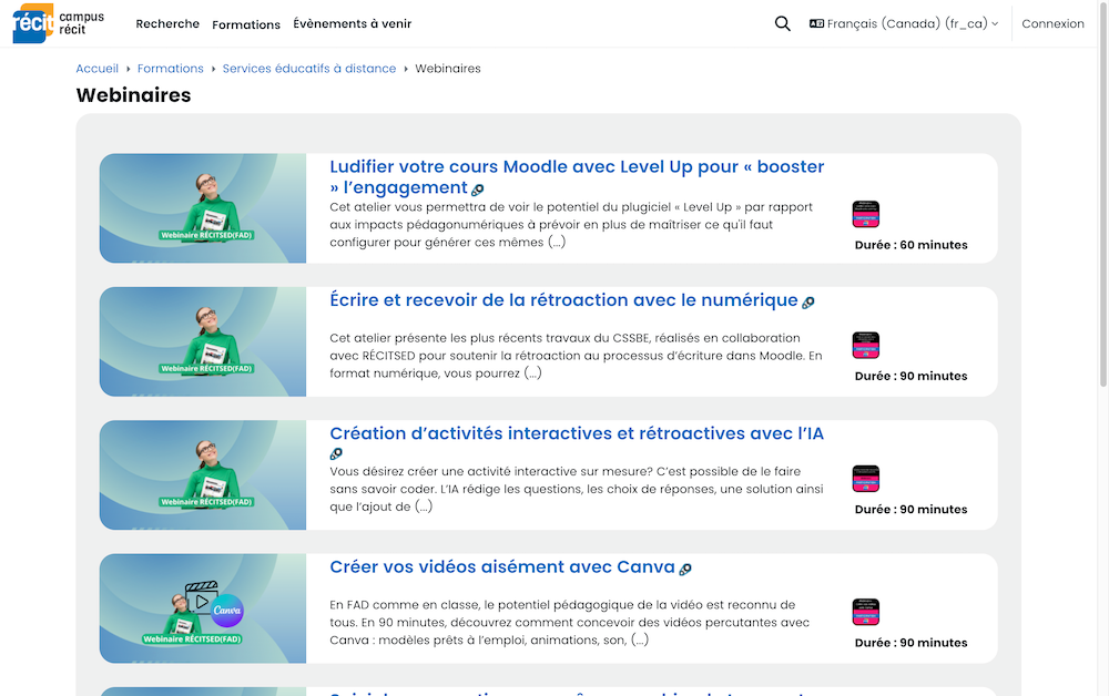 Quelle que soit la modalité initiale choisie dans les ressources présentées ci-bas, nous serons ravis de vous accompagner ou de vous offrir des formations « sur demande » en lien avec les mêmes thématiques.