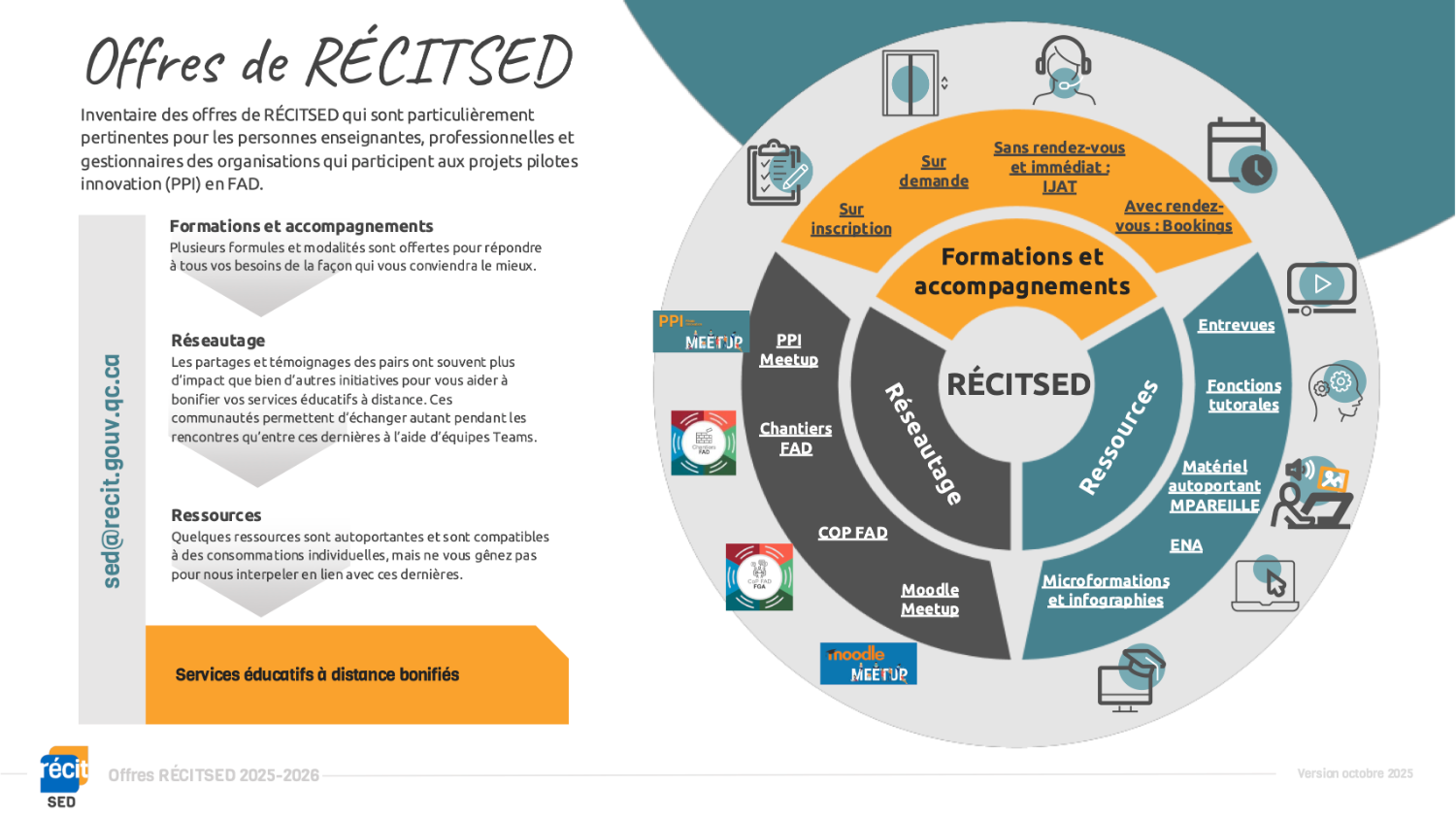 Écrivez à sed@recit.gouv.qc.caRéservez une plage horaire (Bookings) Passez nous voir en IJAT (Teams)