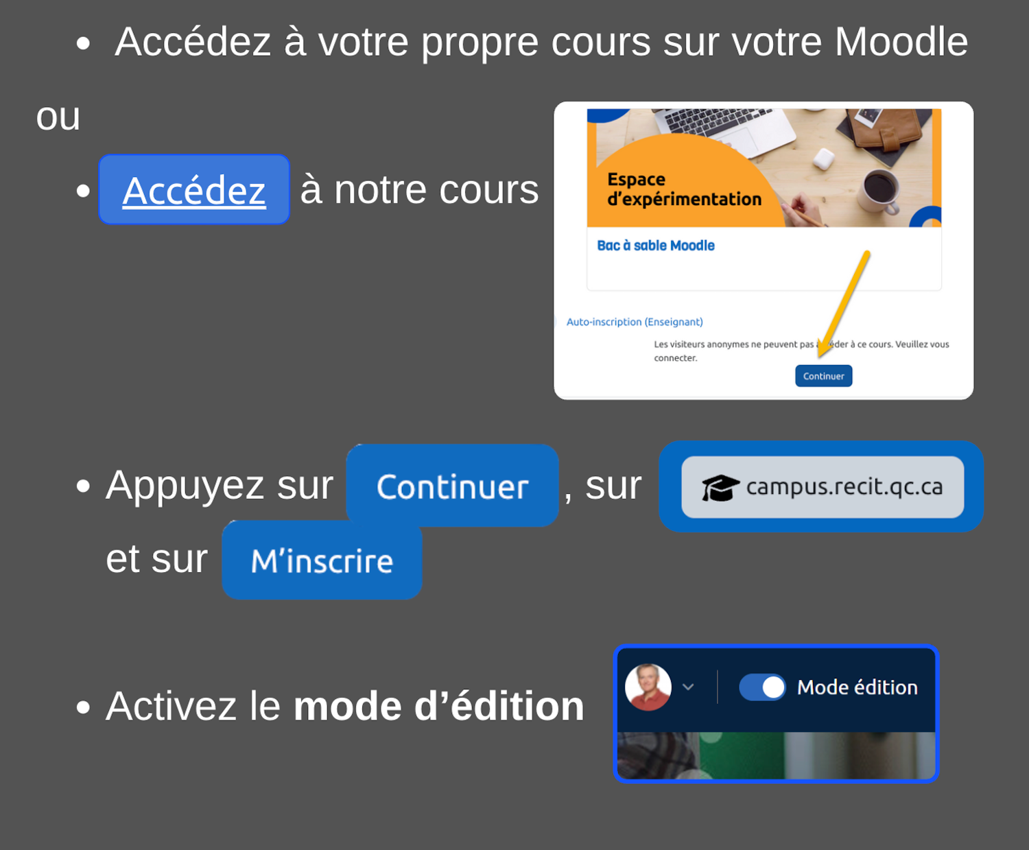 SI vous désirez utiliser notre cours Moodle, suivez ces étapes :