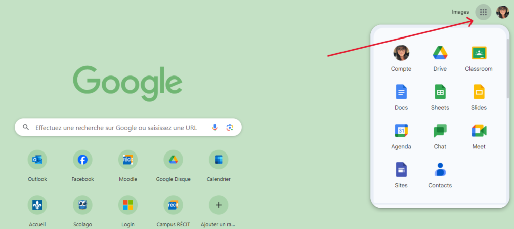 Les outils Google sont accessibles à partir du navigateur Chrome via la gaufre en haut à droite lors de l'ouverture d'un nouvel onglet. Tout est en ligne, donc accessible n'importe quand et de partout. Il n'y a pas de stockage possible à faire sur votre ordinateur dans vos documents.