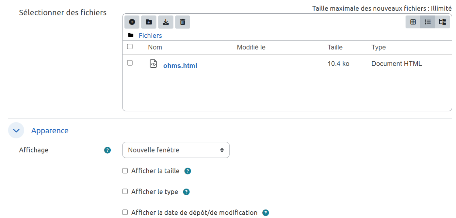 - "Enregistrer sous" et préciser l'extension html. Exemple : ohms.html