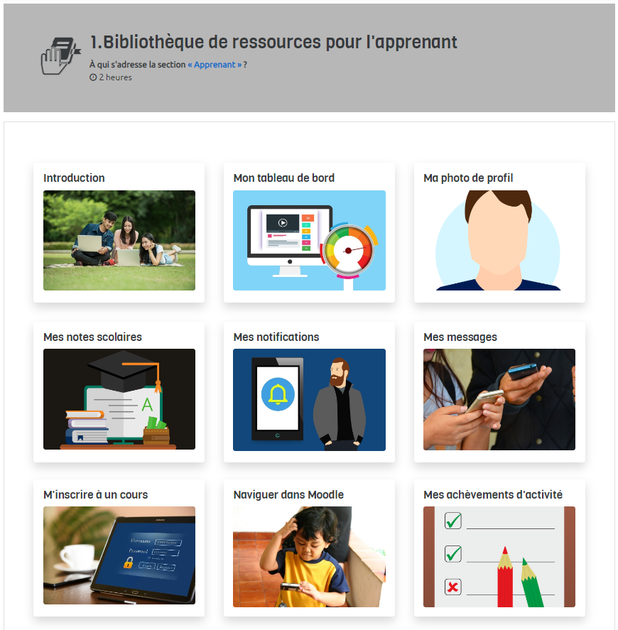 Dans chacune des sections du Guide concernant les types d'utilisateurs, vous trouverez une bibliothèque de ressources. Cliquez sur les tuiles afin d'accéder à l'information rapidement.