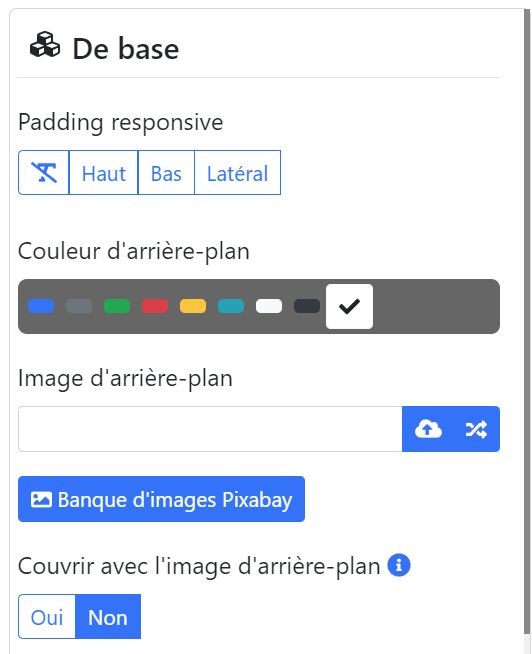 Au moment de la sélection, le panneau « De base » s'affiche et vous permet de personnaliser la section.