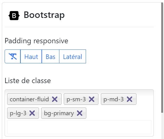 L'analyse des classes révèle la classe bg-primary en lien avec le choix de couleur d'arrière-plan. On remarque également des espacements pour les écrans SM, MD et LG.